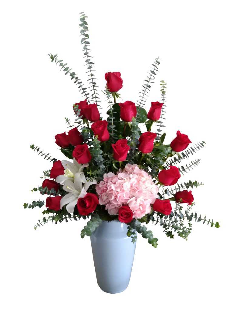 100 rosas rojas importas , helecho cuero y follaje fino
